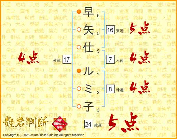 早矢仕ルミ子さんの総運は24画の5点!