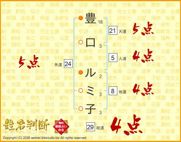 豊口ルミ子さんの外運は24画の5点!
