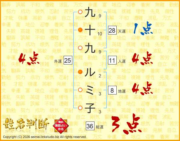 九十九ルミ子さんの総運は36画の3点!