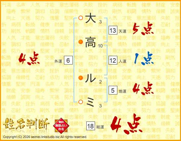 大高ルミさんの総運は18画の4点!