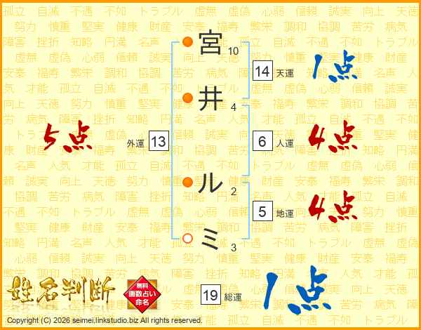 宮井ルミさんの外運は13画の5点!