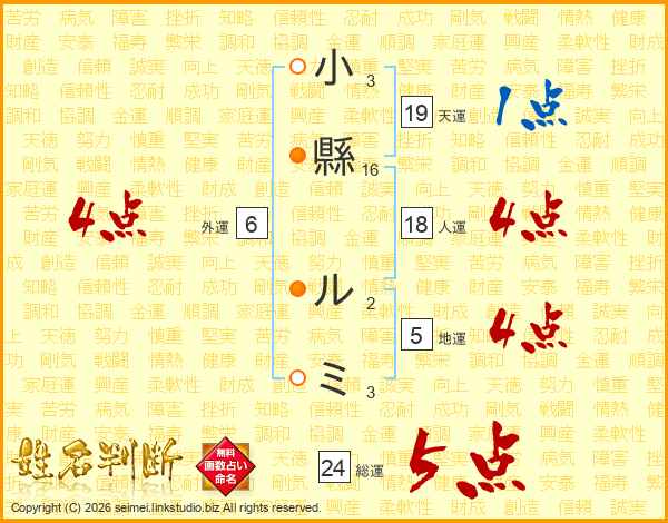 小(3画)縣(16画) ル(2画)ミ(3画)