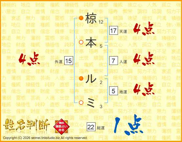 椋(12画)本(5画) ル(2画)ミ(3画)