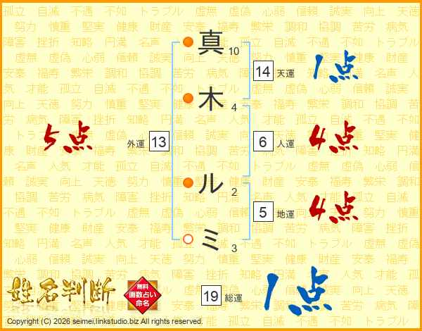 真(10画)木(4画) ル(2画)ミ(3画)