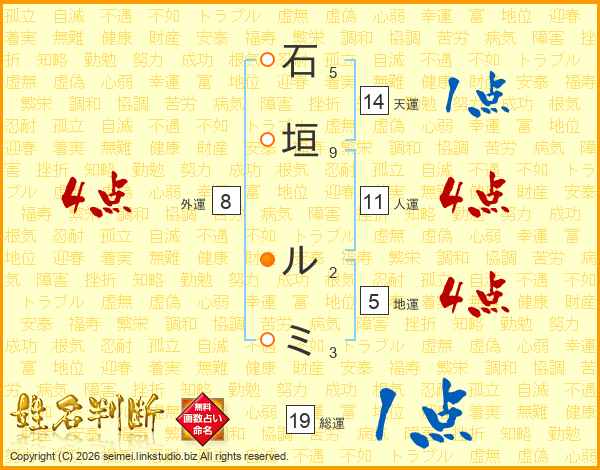 石垣ルミさんの天運は14画の1点!