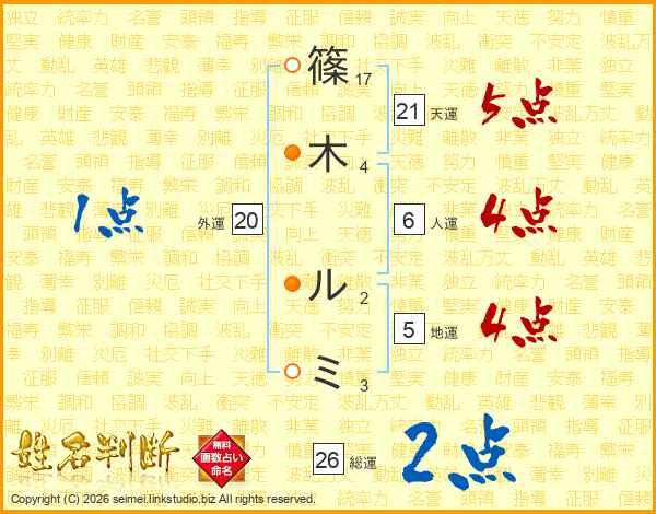 篠(17画)木(4画) ル(2画)ミ(3画)