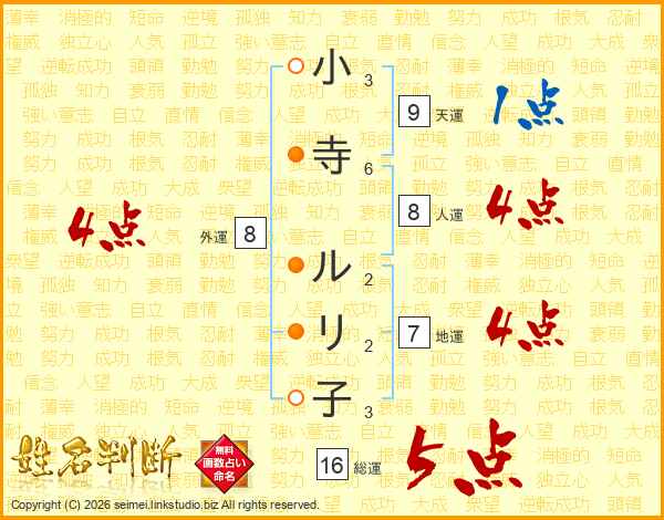 小(3画)寺(6画) ル(2画)リ(2画)子(3画)