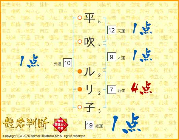 平吹ルリ子さんの総運は19画の1点!