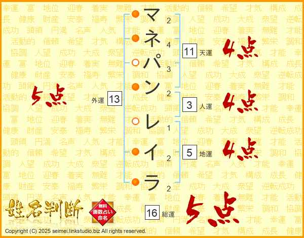マネパンレイラさんの外運は13画の5点!