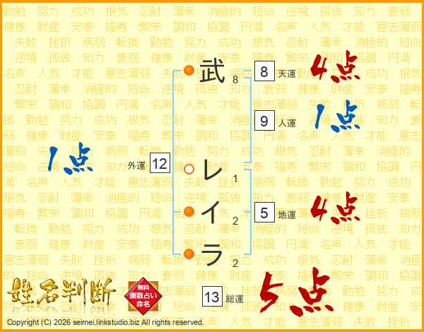 武レイラさんの総運は13画の5点!