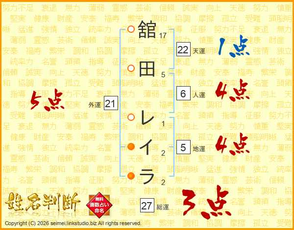 舘田レイラさんの外運は21画の5点!