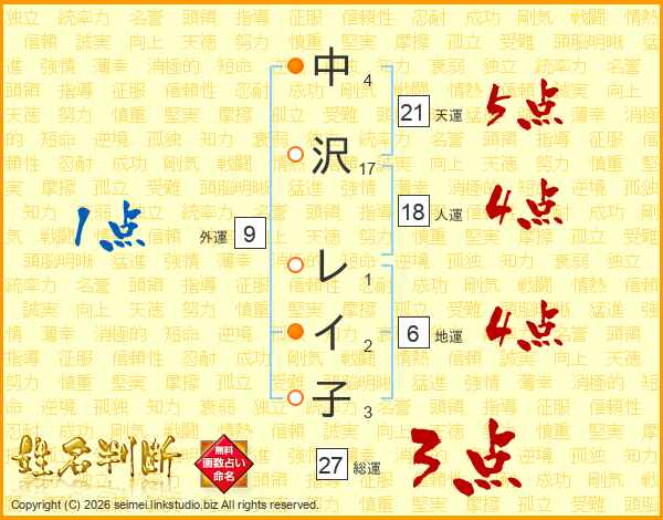 中沢レイ子さんの総運は27画の3点!