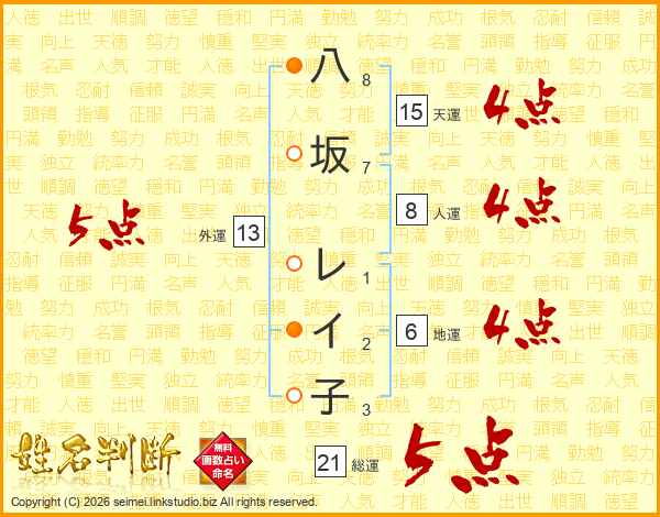 八坂レイ子さんの総運は21画の5点!