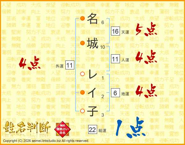 名城レイ子さんの人運は11画の4点!