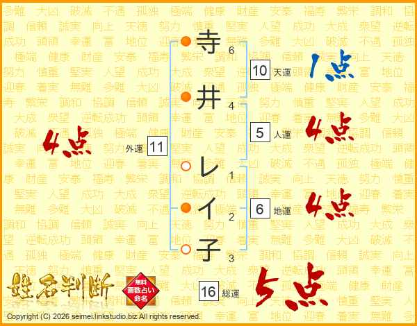 寺井レイ子さんの総運は16画の5点!