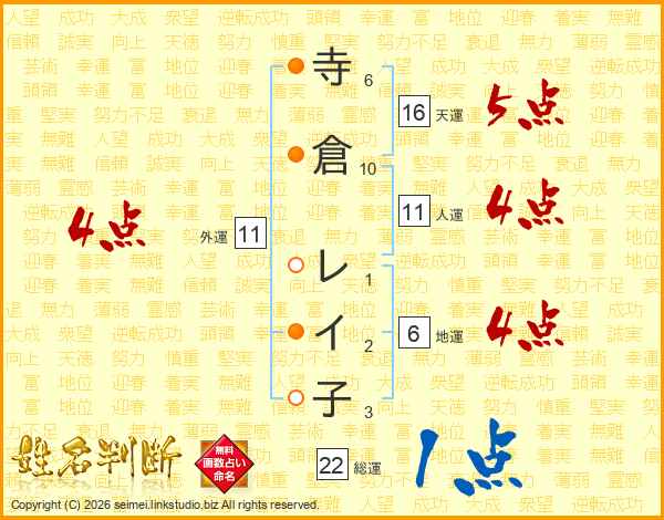 寺倉レイ子さんの総運は22画の1点!