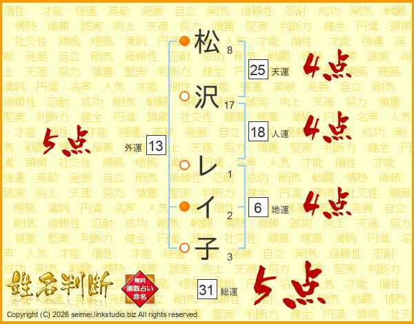 松沢レイ子さんの総運は31画の5点!