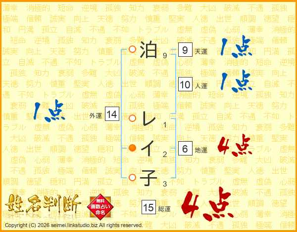 泊レイ子さんの総運は15画の4点!