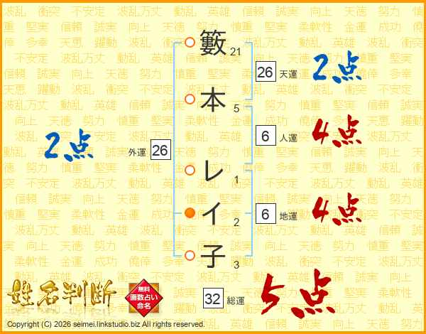 籔(21画)本(5画) レ(1画)イ(2画)子(3画)