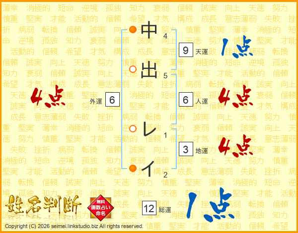 中出レイさんの総運は12画の1点!