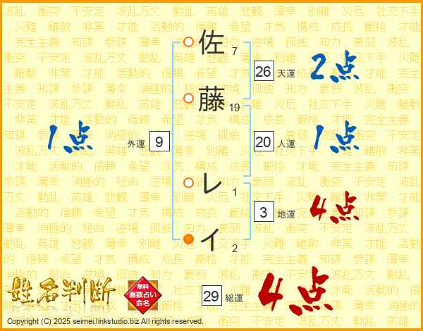 佐藤レイさんの総運は29画の4点!