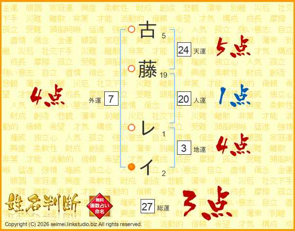 古藤レイさんの総運は27画の3点!