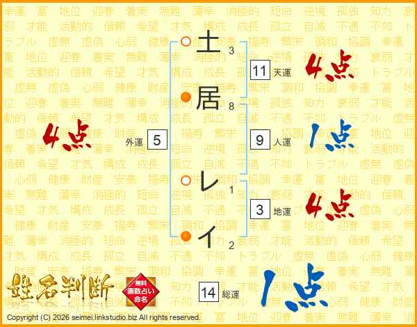 土居レイさんの総運は14画の1点!