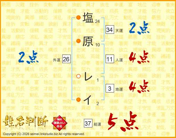 塩原レイさんの総運は37画の5点!