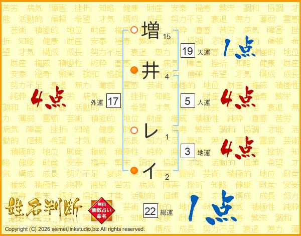 増井レイさんの総運は22画の1点!