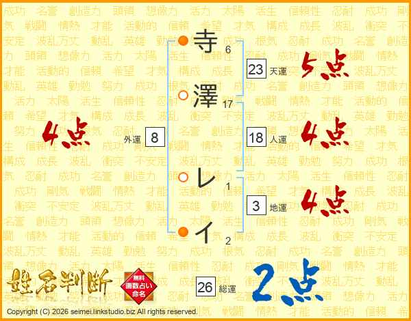 寺澤レイさんの総運は26画の2点!