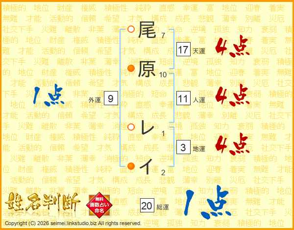 尾原レイさんの天運は17画の4点!