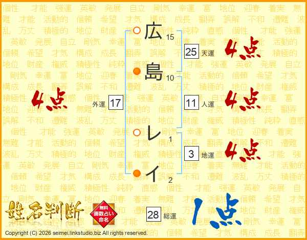 広島レイさんの総運は28画の1点!