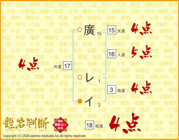 廣レイさんの総運は18画の4点!