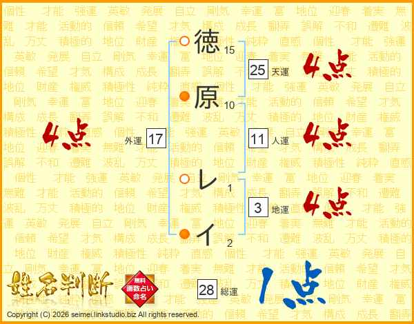 徳原レイさんの総運は28画の1点!