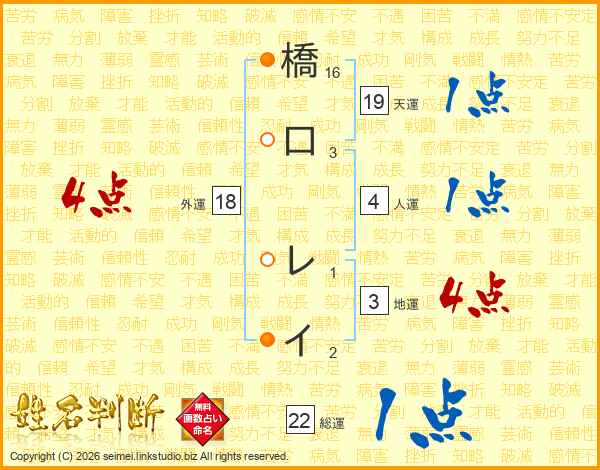 橋口レイさんの人運は4画の1点!