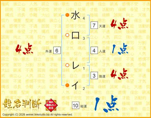 水口レイさんの天運は7画の4点!