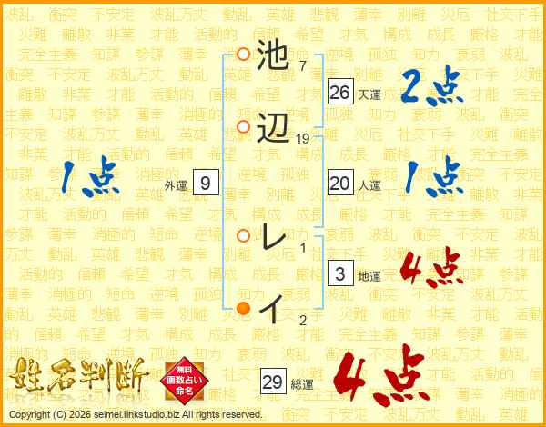 池辺レイさんの天運は26画の2点!