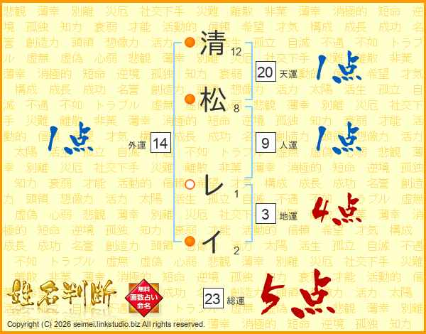清松レイさんの総運は23画の5点!