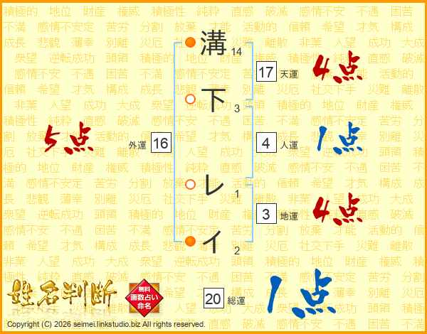 溝下レイさんの天運は17画の4点!