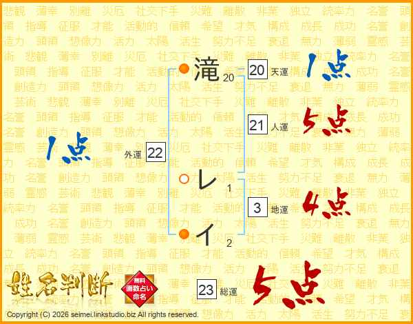 滝レイさんの総運は23画の5点!