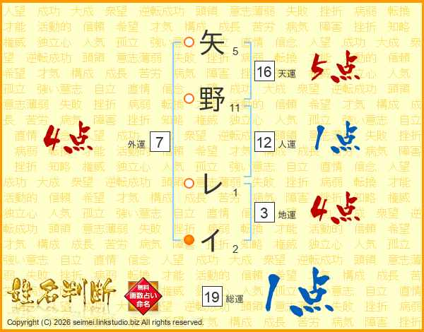 矢野レイさんの総運は19画の1点!