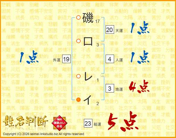 磯口レイさんの総運は23画の5点!