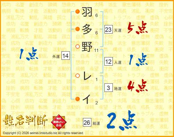 羽多野レイさんの総運は26画の2点!