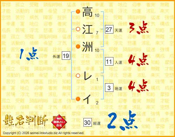高(10画)江(7画)洲(10画) レ(1画)イ(2画)