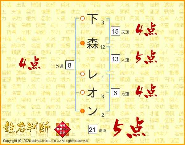 下森レオンさんの総運は21画の5点!
