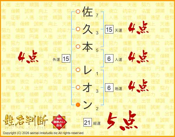 佐久本レオンさんの天運は15画の4点!