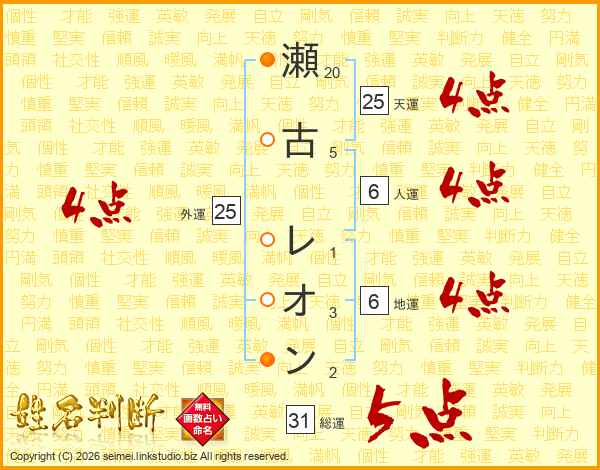 瀬古レオンさんの天運は25画の4点!
