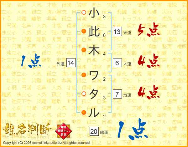 小此木ワタルさんの総運は20画の1点!