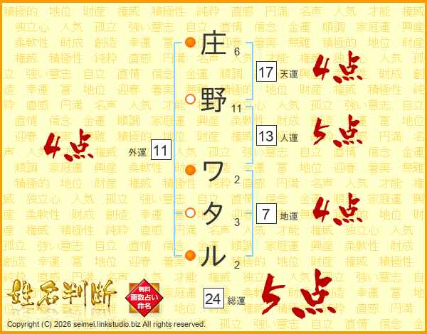 庄野ワタルさんの総運は24画の5点!