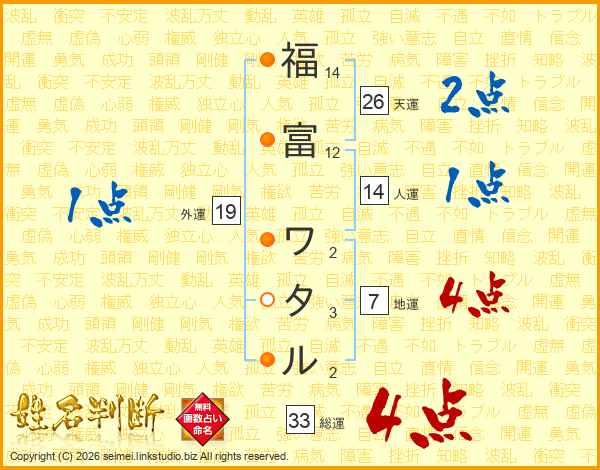 福富ワタルさんの総運は33画の4点!